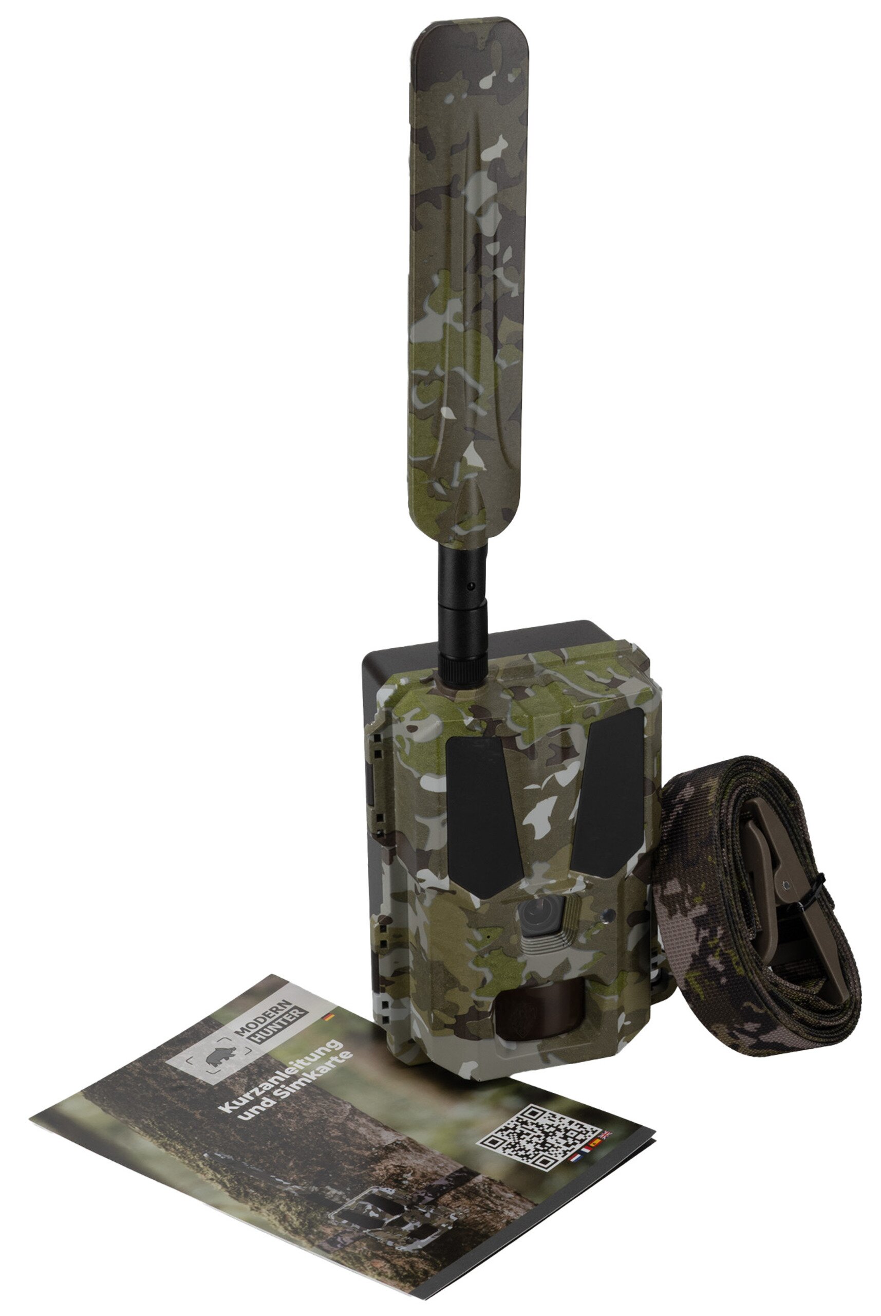 Wildkamera, Montagegurt, 4G-Antenne, 32 GB SD-Karte, SIM-Karte, Bedienungsanleitung.